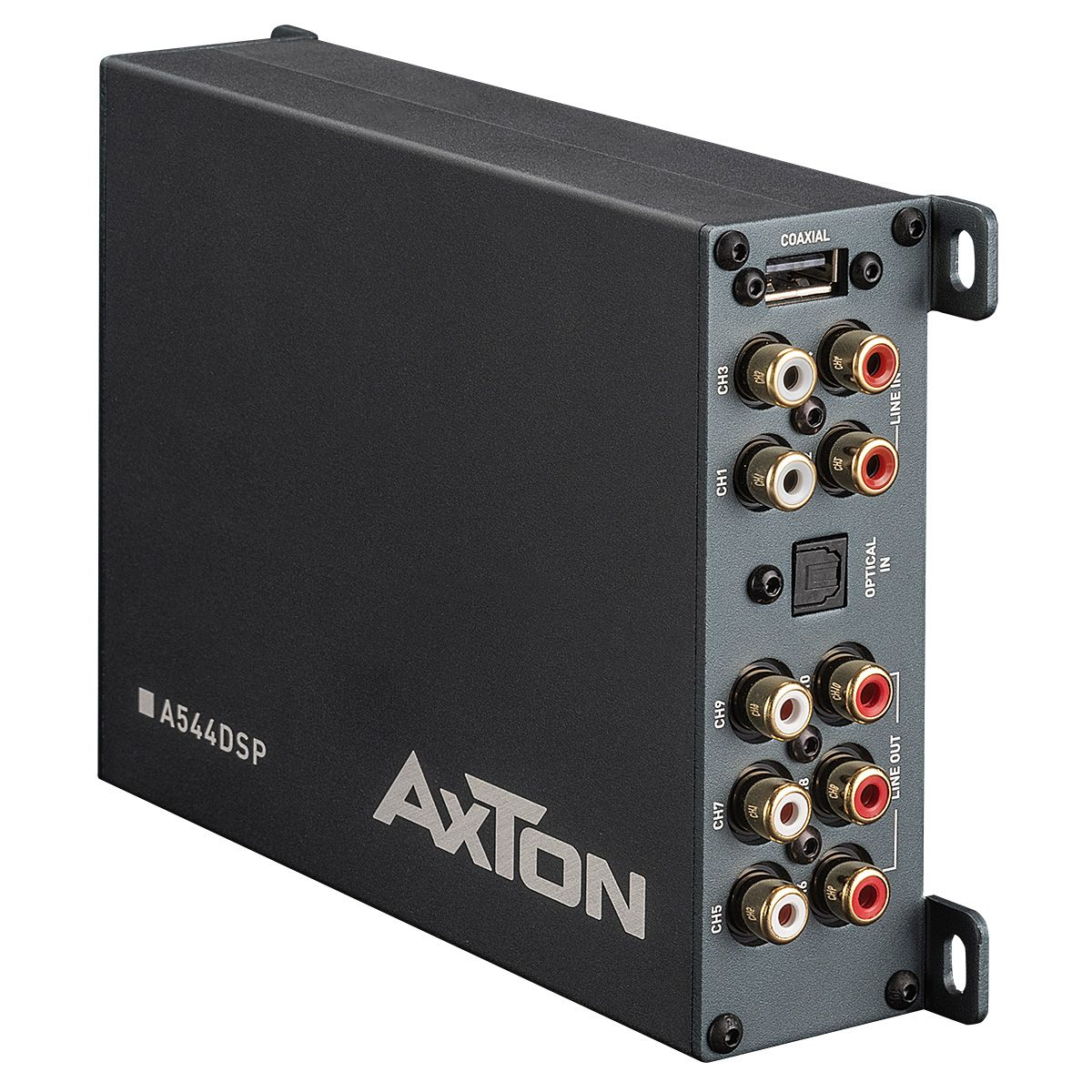 Noul amplificator AXTON DSP a544dsp nu este doar puternic din punct de vedere al echipamentului, ci și din punct de vedere al prețului. 10 canale pot fi configurate cu noul a544dsp prin intermediul aplicației. Dacă sunt necesare și mai multe canale DSP, semnalul audio este transmis fără pierderi prin ieșirea optică prin ghid de undă optic către un alt amplificator AXTON DSP cu intrare optică și astfel se obțin până la 20 de canale DSP. Cu acest concept, teoretic este chiar posibil să se genereze un număr infinit de canale DSP. Desigur, fiecare canal DSP este echipat cu un EQ parametric de 15 benzi, crossover-uri de până la 24 dB/Oct., Corecția de rulare și corecția de fază. Crossover-ul revizuit oferă acum trei caracteristici de filtrare: Butterworth, Linkwitz și Bessel. Cu noul EQ de intrare cu 9 benzi, se poate asigura că toate sursele de semnal au un răspuns de frecvență identic. Noua rutare integrată a canalelor simplifică semnificativ alocarea canalelor. Ceea ce a fost rezolvat anterior prin adaptoare de cablu la intrare se poate face acum cu câteva mișcări în aplicația AXTON DSP. Amplificatorul integrat de clasă A / B declanșează 4 canale de ieșire cu 4 x 25 W RMS. Aceasta este suficientă putere pentru un impuls vizibil al difuzoarelor din serie și o unitate sonoră pentru tweetere în concepte cu 2 sau 3 căi. Celelalte 6 preout-uri pot fi redirecționate convenabil către un Axton a601 și obțineți o combinație puternică de amplificator cu 4 x 25 W RMS + 6 x 100 W RMS, care se aplică sistemelor multicanal ale multor producători de mașini. Interfața ABT50 permite redarea audio Hi-Res sau muzică în calitate studio master prin intermediul AXTON A544DSP.