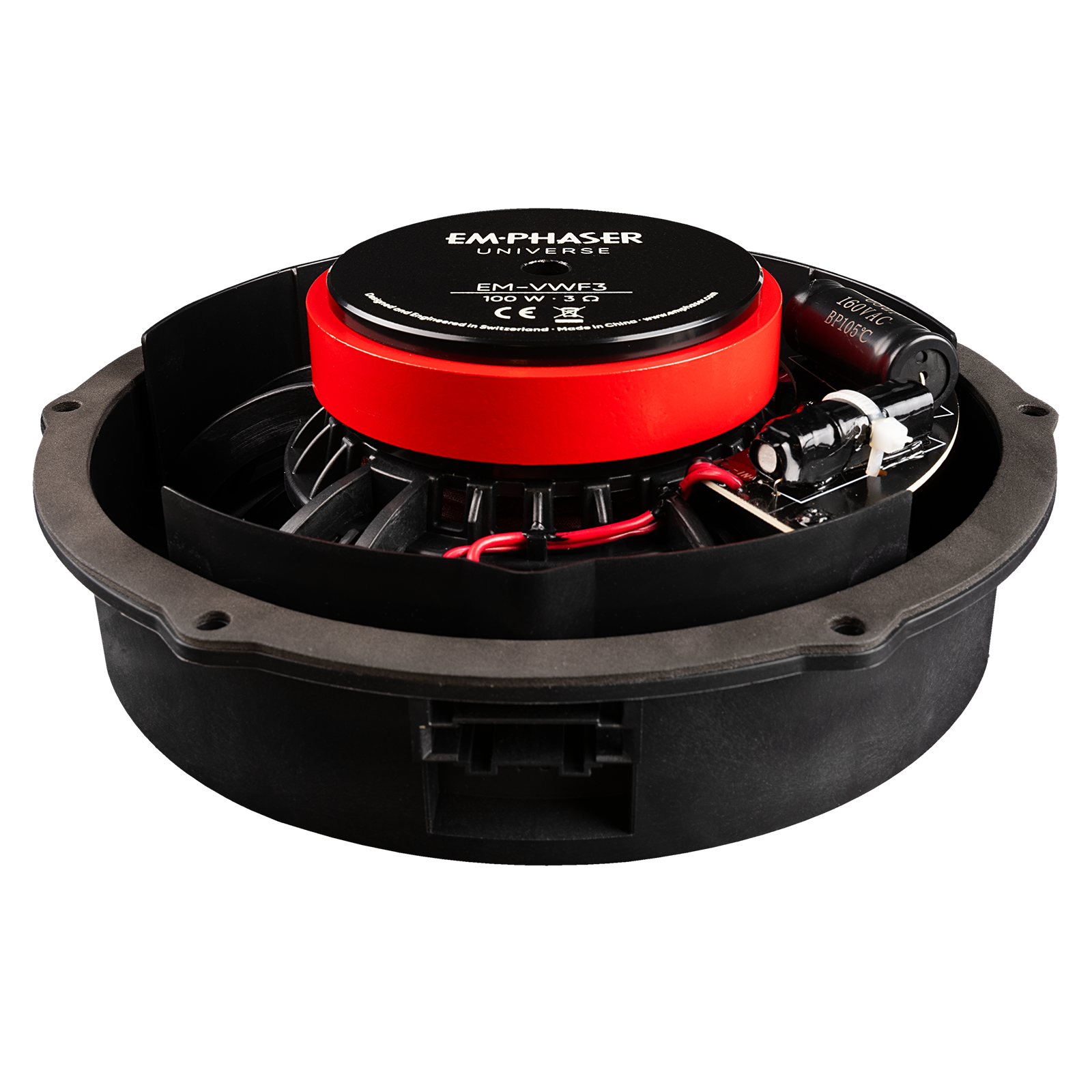 Sistemul de difuzoare cu 3 căi EM-VWF3 constă din componente potrivite precis și oferă o imagine sonoră fantastică, cu un bas care umple încăperea și un sunet detaliat. La reglarea sistemului cu 3 căi, EMPHASER sa concentrat pe fazarea perfectă a componentelor individuale în relație între ele. Acesta este singurul mod de a obține o imagine sonoră cu adevărat transparentă, cu adâncimea spațială dorită. Datele necesare pentru aceasta au fost determinate în vehicul cu ajutorul echipamentelor de măsurare precise și prelucrate într-un software complex de simulare.