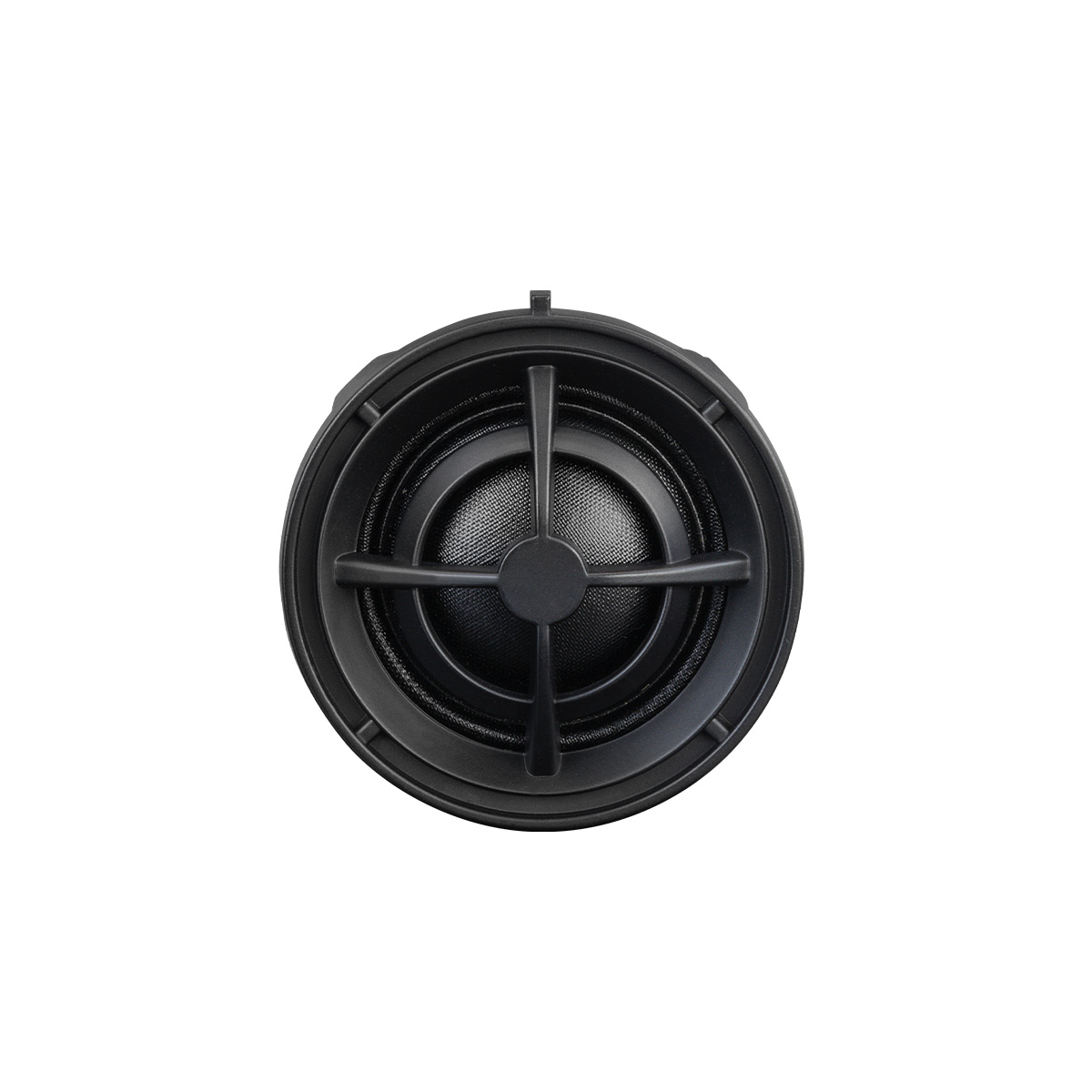 Tweeterul de 25 mm cu dom din material textil este responsabil pentru sunetul spațial extraordinar. Geometria diafragmei oferă o caracteristică direcțională uniformă pentru o reproducere excelentă a sunetului și spațială în locația originală de instalare. Pe lângă greutatea redusă a diafragmei, a surroundului și a bobinei vocale, decizia conștientă de a nu folosi ferofluid este în primul rând responsabilă pentru faptul că tweeter-ul redă atât de viu si dinamic. Datorită carcasei sale speciale, tweeter-ul poate fi instalat cu ușurință în locația originală de montare.
