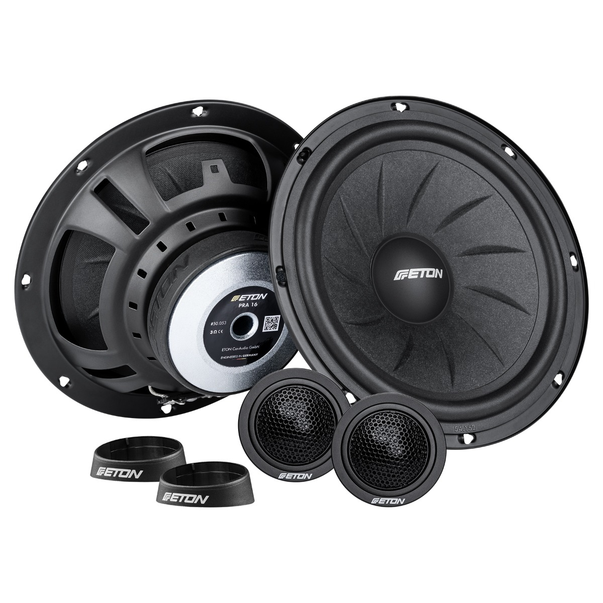Câștigătorul testului: Experimentați sunetul de top din clasa entry-level cu noua tehnologie PRA cone! Conul din fibră de hârtie-sticlă rigidizat cu nervuri este un adevărat punct culminant și o altă piatră de hotar ETON în dezvoltarea conului. Este deosebit de ușor și, de asemenea, deosebit de rigid - ambele cerințe de bază pentru un difuzor bun. Datorită rigidizării nervurilor, s-a obținut o rigiditate maximă la torsiune. Acest lucru asigură o reproducere ultra-dinamică și puternică a basului, extrem de precisă și la obiect. Seria PRA impresionează prin caracterul său sonor cald, plin, vocea bogată și adâncimea spațială incredibilă!