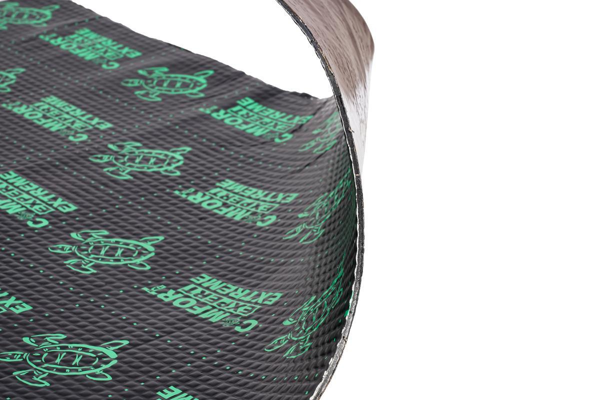 Extreme constă din două tipuri de agenți de etanșare nou dezvoltați, unde fiecare își îndeplinește funcția diferită. Cea mai mare parte a materialului constă dintr-un strat superior de bitum inovator, care are o rigiditate cu 20% mai mare decât versiunea anterioară și permite filtrarea vibrațiilor cu cea mai mare eficiență chiar și pe zonele cele mai încărcate. Cel de-al doilea strat de etanșant special ușor iese în evidență, pe lângă greutatea redusă, pentru aderența sa extremă, care a fost mărită cu 15%. În plus, ambele straturi sunt separate prin folie de aluminiu pentru o rigiditate și o eficiență și mai mare a materialelor. Partea superioară a materialului este, de asemenea, prevăzută cu același film. Rezultatul este cel mai eficient material vibroabsorbant de pe piață, cu o grosime de 3,5 mm, cu un coeficient de perdere mecanica care depășește 0,63 unități, care poate face față cu ușurință vibrațiilor și zgomotului de joasă frecvență. Materialul este, de asemenea, potrivit pentru instalații audio SPL puternice. Desigur, Extreme este rezistent la apă, umiditate, uleiuri și temperaturi extreme, are proprietăți anticorozive și își păstrează aceleași proprietăți iarna și vara. Rețineți că materialul este destinat în principal centrelor de instalare și este imperativ să le încălziți la 50 de grade înainte de aplicare.