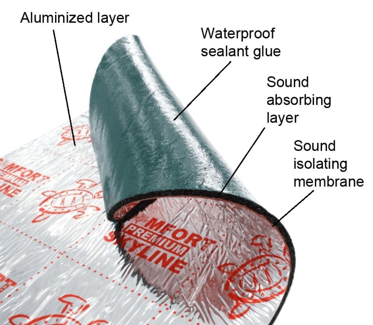 Comfortmat Skyline este un material acustic de top din seria de modele Premium, conceput în principal pentru izolarea fonică a tavanului și capotei unei mașini. Este un material unic de amortizare cu trei straturi care combină funcția de izolare fonică și termică datorită structurii sale multistrat. Se compune dintr-o membrană unică de izolare fonică cu o grosime de 1 mm, strat de izolare termică și fonică cu o grosime de 5 mm. O parte importantă a materialului este și ultima generație de etanșant adeziv modern de montare dezvoltat pentru sezonul 2018/2019, care garantează același efect adeziv la temperaturi cuprinse între -50 și +150 grade. Astfel, se poate garanta că orizontul nu se va desprinde niciodată spontan. Alte caracteristici unice includ greutatea – este cel mai ușor material acustic de pe piață care include o membrană de izolare fonică. Desigur, Skyline este complet impermeabil, nu absoarbe umezeala, nu putrezeste si nu se descompune. Cel mai important, Comfortmat Skyline oferă un nivel ridicat de izolare fonică și poate reduce zgomotul cu până la 25 dB.
